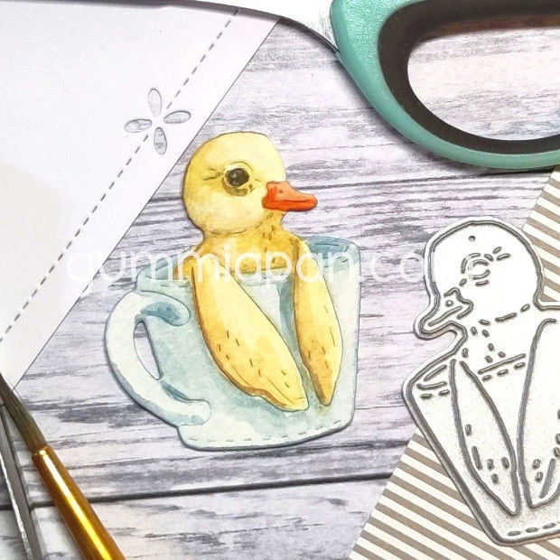 Een grappig eendje in een beker. Leuk voor kaarten of art journals met voorjaar of Pasen als thema. De set bevat 1 stans. De grote is ongeveer 34x41 mm.