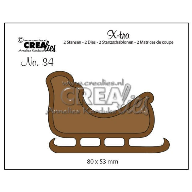 This die consists of 2 parts and you cut out all parts for a nice sled. After the loose parts have been put together you have a nice picture that is about 80 x 53 mm. This sled is great on a Christmas card, a Scrapbook page or in a travel journal.