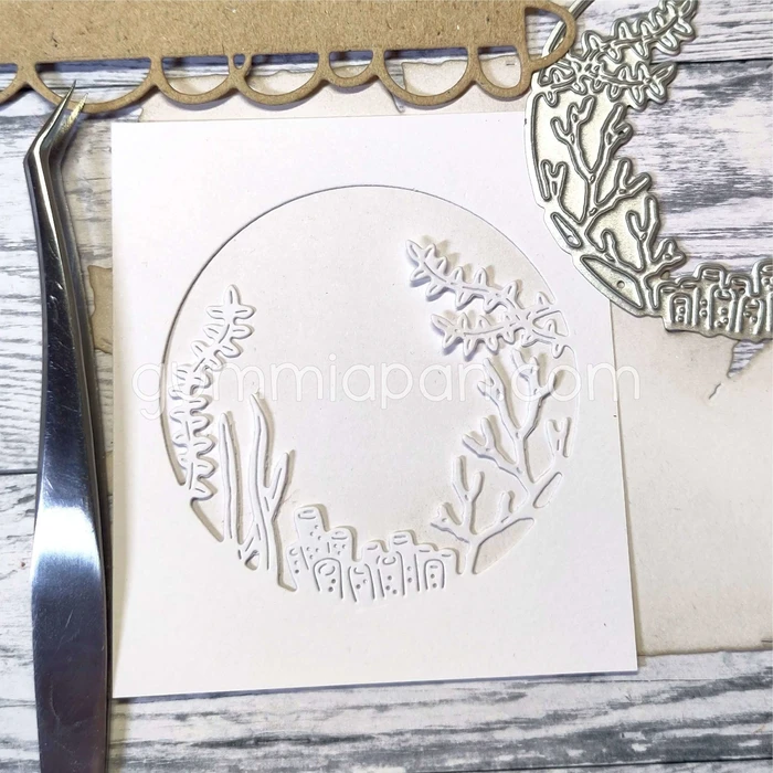 Een mooi venster om een door kijk te maken in je kaart. Dit venster laatje door het rif kijken en geeft je het gevoel dat je tussen het koraal en zeewier waant. Leuk voor kaarten met zee als thema. De set bevat 1 stans. De stans is ongeveer 63x62 mm groot.
