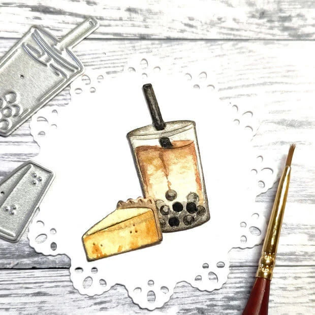 Dit glas met Ice tea en taart punt is leuk voor op een uitnodiging of als accentje in de bullet jounral.
