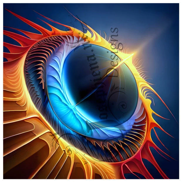Word betoverd door de levendige kleuren die samenkomen in dit kosmische schouwspel: blauw, geel, oranje en rood dansen harmonieus over het canvas. In het midden vind je het stralende drakenoog dat met zijn complexe details niet alleen esthetiek biedt maar ook mysterie oproept.