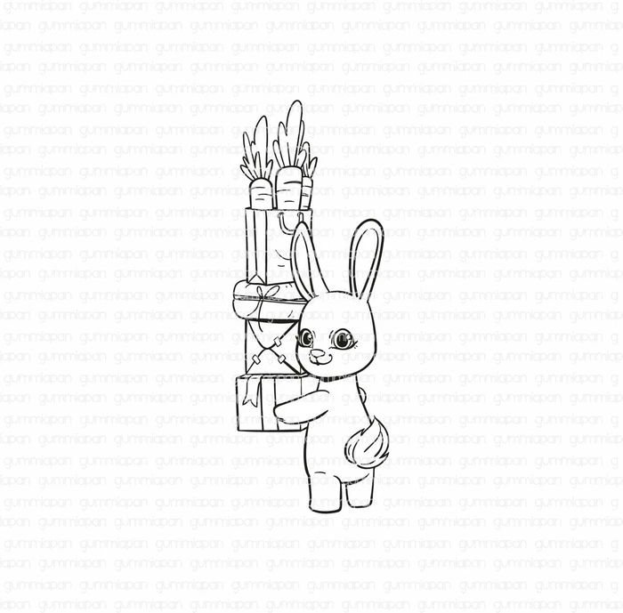 Konijn met pakket is een stempel van Gummiapan. Deze rubberen stempel is unmounted en heeft een afmeting van ongeveer 36x95 mm. Deze stempels zijn heel leuk te gebruiken in een art journal of als hoofd afbeelding op een kaartje.