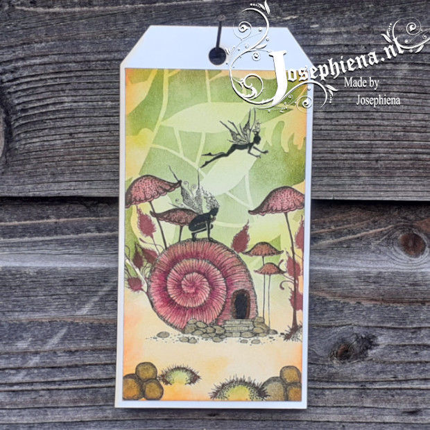 Een prachtig voorbeeld van een label/tag. Voor de achtergrond van deze tag is gebruikt een stencil van Josephiena's Design en Element ink van Lavinia Stamps. Daarnaast is de tag met diverse stempels van Lavinia Stamps bestempelt. Het elfenhuisje en de paddenstoelen zijn ingekleurd met Staedtler Pigment Art brush pennen. Een compleet overzicht van gebruikte producten vind je hier onder. Wil je zien hoe Josephiena deze heeft gemaakt ga dan naar: https://youtu.be/kajLDkLQWII
