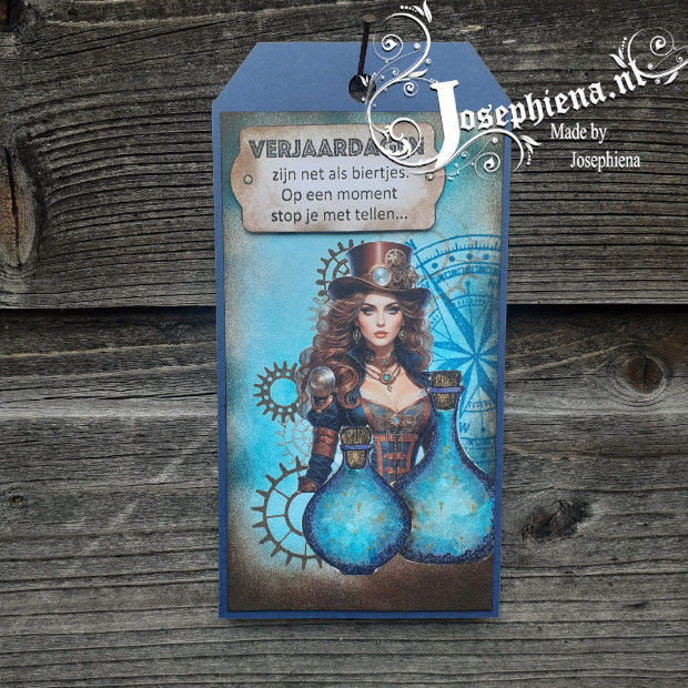 Een stoer tag gemaakt met een van de steampunk collage papers van Josephiena.nl.