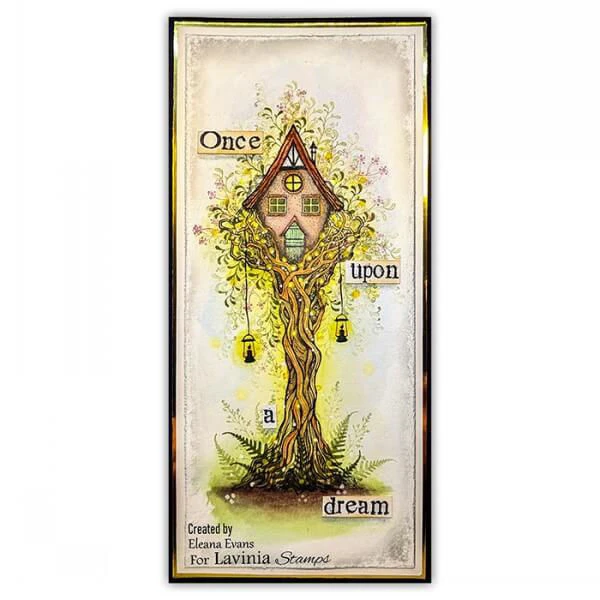Maak je creaties sprankelend en vol magie met de The Nook, een prachtige clearstamp van Lavinia Stamps. Deze unieke stempel is perfect voor elke papierproject, of je nu kaarten maakt, scrapbooks ontwerpt of art journaling doet. De illustratie toont een prachtig huis dat trots bovenop de stam van een betoverende boom prijkt, omringd door verweven takken die samen een nest vormen.
